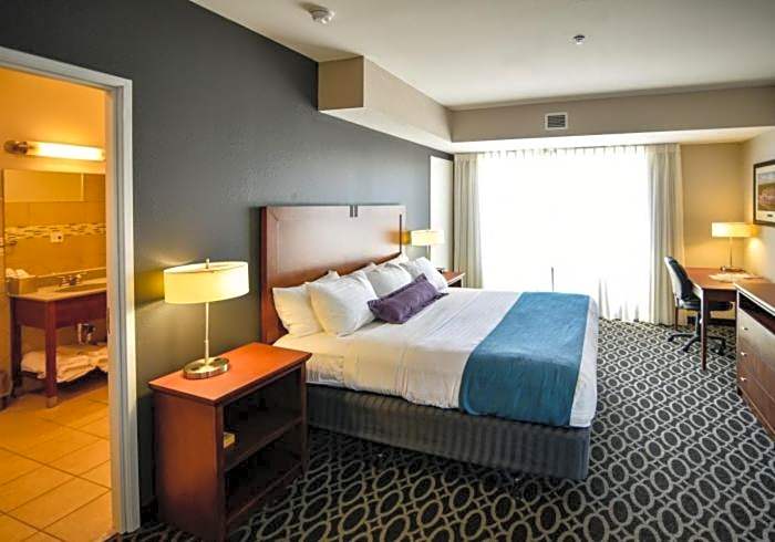 This accessible suite features a flat-screen TV, microwave and refrigerator. The bathroom comes with a hairdryer and free toiletries. Wider doorways and handrails are part of this room.